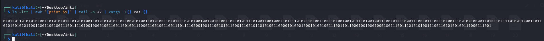 for i in {0..55}; do cat "$i" done - >The concatenated output was a long binary string: