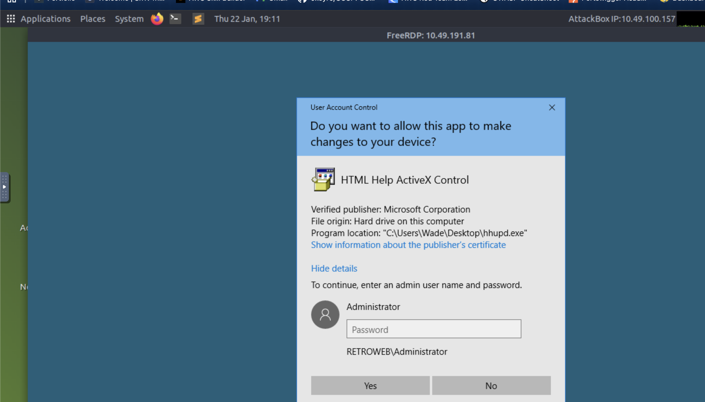 There seemed to be some problem with the reverse shell. So, next what I tried was the other service we found open, i.e. RDP.